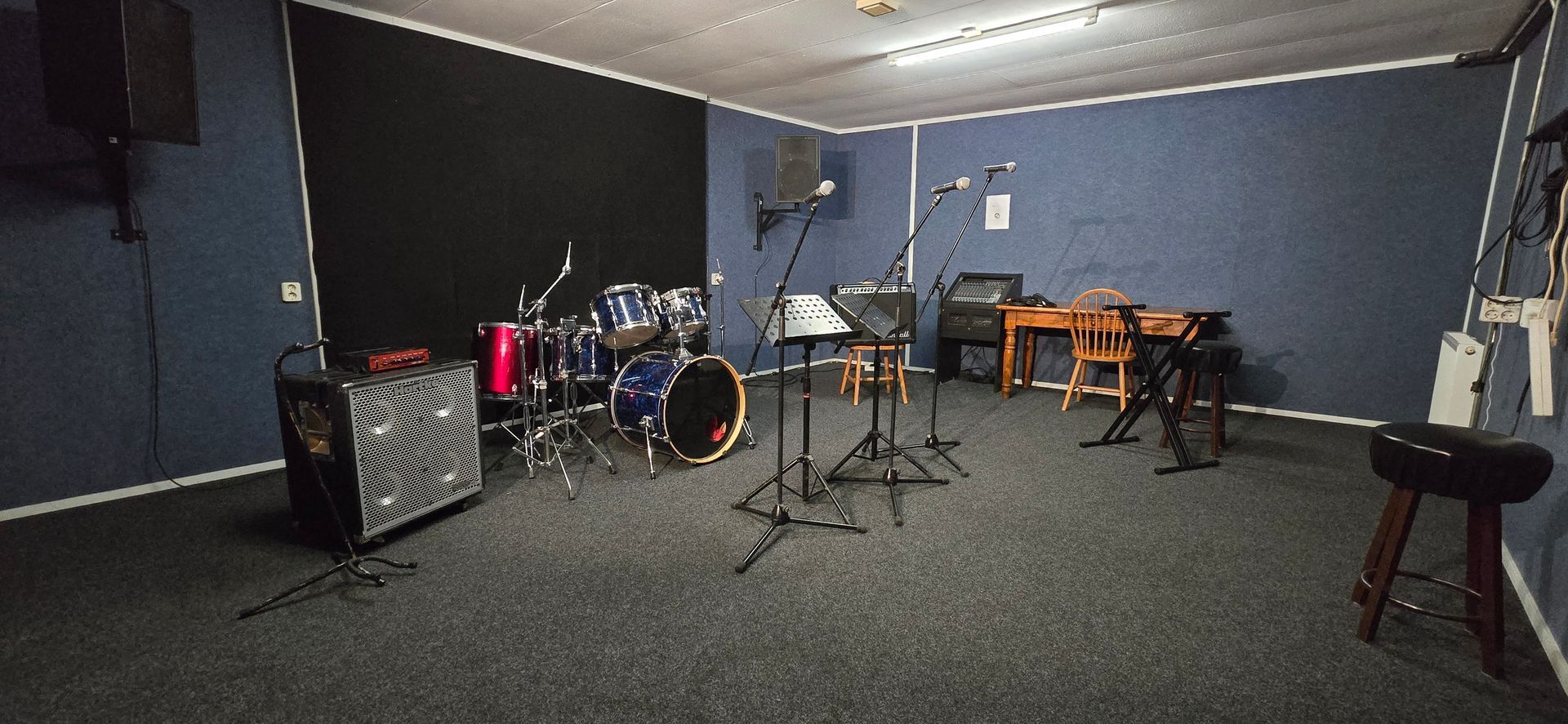 In elke ruimte vind je alles wat je nodig hebt om de muziek te laten knallen: een gitaarcombo, een bascombo, een 5-delig drumstel en een zangset met 3 microfoons – wat wil je nog meer? En alsof dat nog niet genoeg is, hebben we ook nog een mengtafel met 8 mic inputs en 4 stereo inputs via jack-aansluiting klaarstaan!